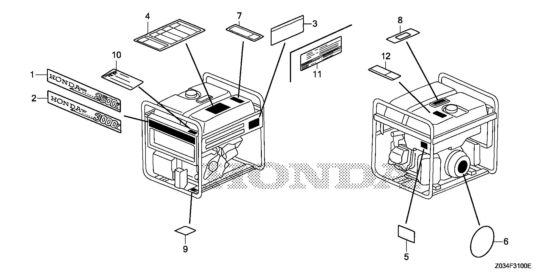 Generators EM EM2500 EM2500C A EZGK-1000001-1000013 LABELS - DFW Honda